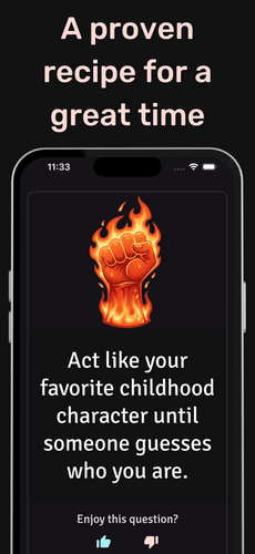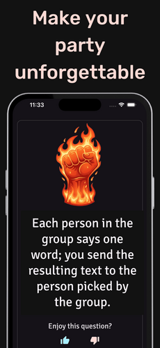 ⏳ Stop wasting time on complicated setups—just gather your friends and launch Truth or Dare. This party game is packed with a mix of funny, deep and spicy questions that you control through categories! You can find questions for couples to set up romantic night as well.