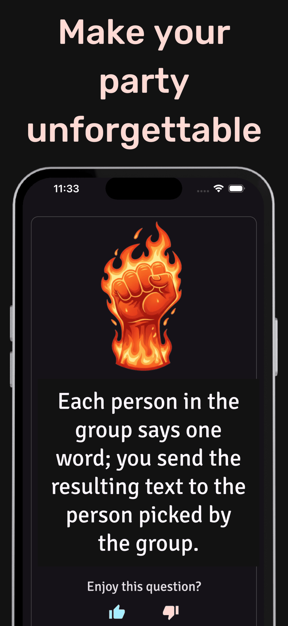 Truth or Dare is a proven party game, that will make hanging out unforgettable. Whether you're already with your friends or preparing for an awesome night, it'll make the most of your time!